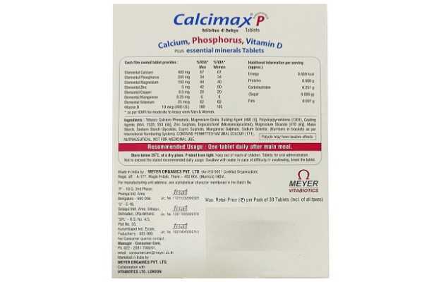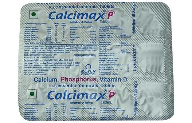 Calcimax P is an allopathic medicine Secondary and off-label uses of Calcimax P have also been mentioned below. The key ingredients of Calcimax P are Calcium, Phosphorous, Vitamin D3. The correct dosage of Calcimax P depends on the patient's age, gender, and medical history. This information has been provided in detail in the dosage section.