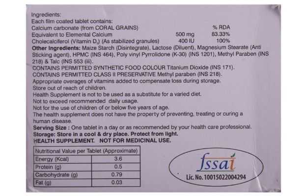 Corcium D3 Tablet is an allopathic medicine Secondary and off-label uses of Corcium D3 Tablet have also been mentioned below. The key ingredients of Corcium D3 Tablet are Calcium, Cholecalciferol. The correct dosage of Corcium D3 Tablet depends on the patient's age, gender, and medical history. This information has been provided in detail in the dosage section.