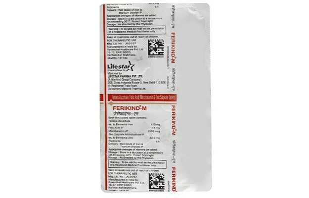 Ferikind M Suspension is an allopathic medicine The key ingredients of Ferikind M Suspension are Iron, Folic Acid, Methylcobalamin, Ferrous Ascorbate. The correct dosage of Ferikind M Suspension depends on the patient's age, gender, and medical history. This information has been provided in detail in the dosage section.