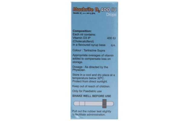Macbrite D3 400 Drops, a prescription drug, is manufactured in various forms such as Drops. It is primarily used for the treatment of Nutritional Deficiency, Vitamin D Deficiency. Other than this, Macbrite D3 400 Drops has some other therapeutic uses, which have been discussed ahead.