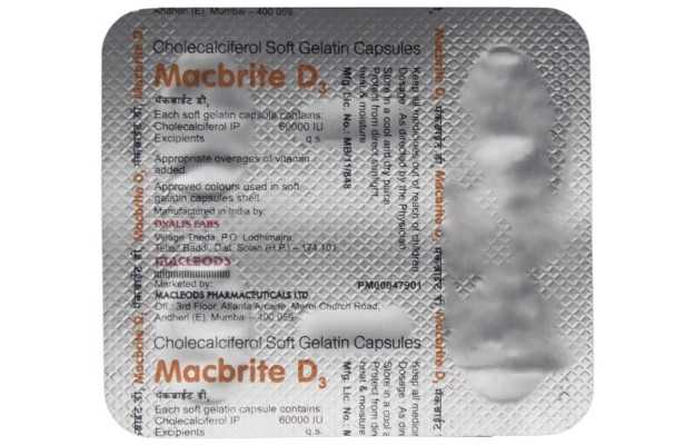 Macbrite D3 Soft Gelatin Capsule is a prescription drug, available for use as Capsule. Primarily, it is used for the treatment of Nutritional Deficiency, Vitamin D Deficiency. Other than this, Macbrite D3 Soft Gelatin Capsule has some other therapeutic uses, which have been discussed ahead.