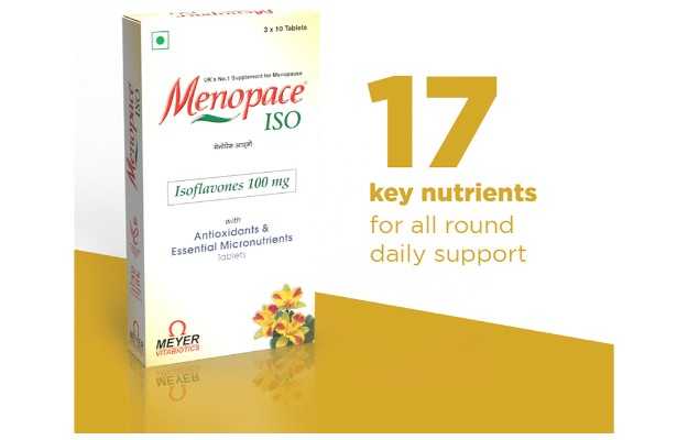 Menopace ISO Tablet is an allopathic medicine The key ingredients of Menopace ISO Tablet are Vitamins, Soy Isoflavones. The correct dosage of Menopace ISO Tablet depends on the patient's age, gender, and medical history. This information has been provided in detail in the dosage section.