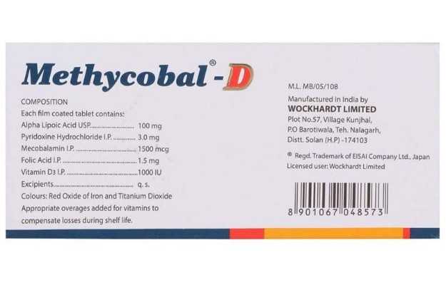 Methycobal D is an allopathic medicine The key ingredients of Methycobal D are Multivitamin, Alpha Lipoic Acid. The correct dosage of Methycobal D depends on the patient's age, gender, and medical history. This information has been provided in detail in the dosage section.