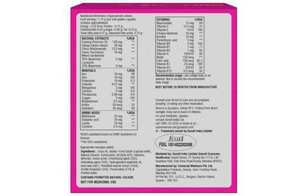 Multivite Woman Softgel is an allopathic medicine The key ingredients of Multivite Woman Softgel are Lycopene, Citrus bioflavonoid, Evening Primrose Oil, Iodine, Minerals, Green tea, Carotenoids. The correct dosage of Multivite Woman Softgel depends on the patient's age, gender, and medical history. This information has been provided in detail in the dosage section. Women’s health supplements support hormonal balance, bone strength, skin health, energy levels, immunity, and overall health