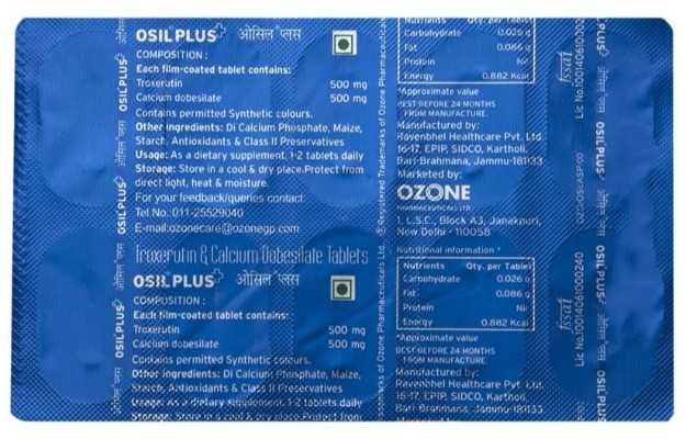 Osil Plus Tablet is a prescription drug, available for use as Tablet. It is typically used for the treatment of Piles, Varicose Veins. Other than this, Osil Plus Tablet has some other therapeutic uses, which have been discussed ahead.