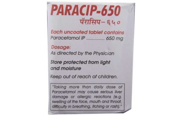 In addition, Paracip 650 Tablet (10)'s effect is Safe during pregnancy and Safe for lactating mothers. Warnings related to Paracip 650 Tablet (10)'s effects on the liver, heart and kidney, if any, have been listed below.