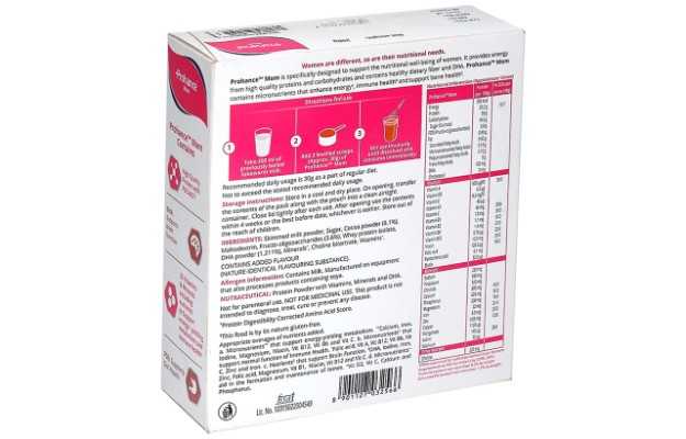Prohance Mom Powder Chocolate is an allopathic medicine Secondary and off-label uses of Prohance Mom Powder Chocolate have also been mentioned below. The key ingredients of Prohance Mom Powder Chocolate are Docosahexaenoic acid(DHA), Minerals, Vitamins. The correct dosage of Prohance Mom Powder Chocolate depends on the patient's age, gender, and medical history. This information has been provided in detail in the dosage section.