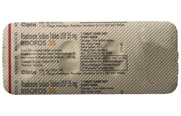 Medical history of the patient along with age and gender determines the dosage of Risofos 35 Tablet. Dosage also depends on the route of administration and your chief complaint for which the drug is prescribed. Detailed information has been provided in the dosage section.