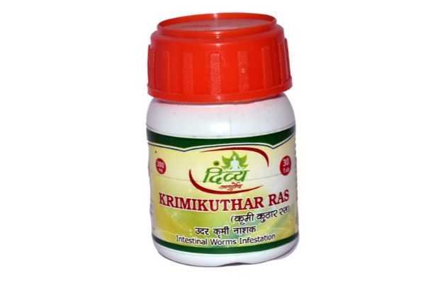 Shree Divya Ayurved Krimi Kuthar Ras is an ayurvedic medicine that is primarily used for the treatment of Intestinal Worms. The key ingredients of Shree Divya Ayurved Krimi Kuthar Ras are Camphor, Vidanga, Palash, Hing. The properties of which have been shared below. The correct dosage of Shree Divya Ayurved Krimi Kuthar Ras depends on the patient's age, gender, and medical history. This information has been provided in detail in the dosage section.