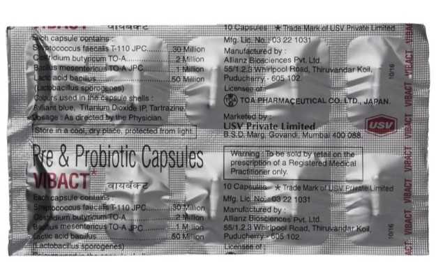 Vibact is an allopathic medicine The key ingredients of Vibact are Lactobacillus. The correct dosage of Vibact depends on the patient's age, gender, and medical history. This information has been provided in detail in the dosage section.
