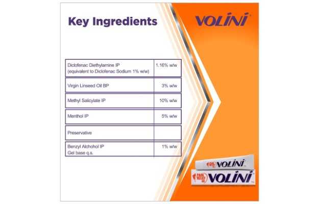 Volini is an allopathic medicine that is primarily used for the treatment of Back Pain, Joint Pain, Neck Pain, Shoulder Pain, Sprain. The key ingredients of Volini are Diclofenac, Menthol, Linseed oil, Methyl Salicylate. The properties of which have been shared below. The correct dosage of Volini depends on the patient's age, gender, and medical history. This information has been provided in detail in the dosage section.