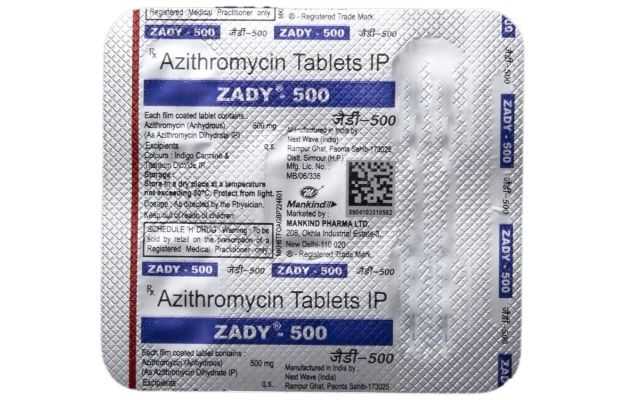 Zady 500 Mg Tablet , a prescription drug, is manufactured in various forms such as Tablet. Ear Infection, Tonsillitis, Pneumonia are some of its major therapeutic uses. Zady 500 Mg Tablet also has some secondary and off-label uses. These are listed below.