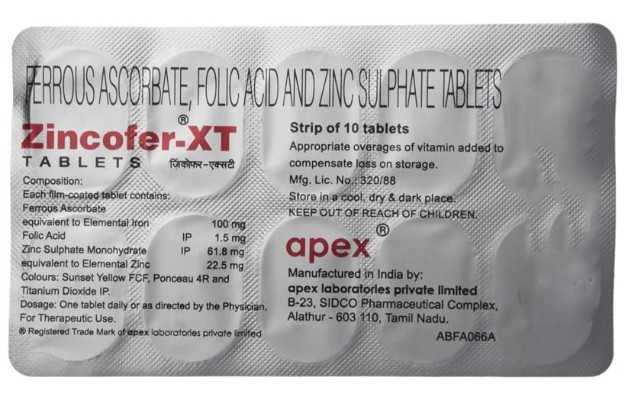 Zincofer is an allopathic medicine Secondary and off-label uses of Zincofer have also been mentioned below. The key ingredients of Zincofer are Iron, Folic Acid, Zinc Sulfate, Vitamin B Complex , Vitamin C. The correct dosage of Zincofer depends on the patient's age, gender, and medical history. This information has been provided in detail in the dosage section.