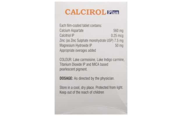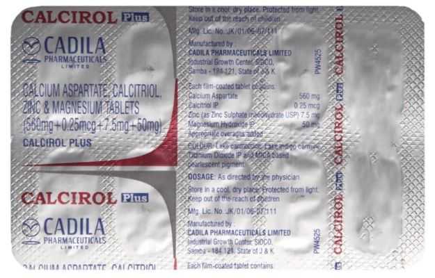 कैल्सीरोल प्लस टैबलेट कैल्शियम एस्पेरेटेट प्रदान करता है जिसमें कैल्सिट्रियोल, मैग्नेशियम, और जिंक जैसे आवश्यक पोषक तत्व होते हैं। इन पोषक तत्वों का उपयोग हड्डियों में जैव-अवशोषित कैल्शियम के बेहतर उपयोग के लिए किया जाता है।