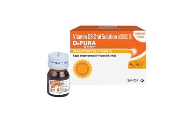 DePura Vitamin D3 Oral Solution बिना डॉक्टर के पर्चे द्वारा मिलने वाली एलोपैथिक दवा है, जो मुख्यतः पोषण की कमी के इलाज के लिए उपयोग किया जाता है। DePura Vitamin D3 Oral Solution के मुख्य घटक हैं कॉलेकैल्सिफेरॉल DePura Vitamin D3 Oral Solution की उचित खुराक मरीज की उम्र, लिंग और उसके स्वास्थ्य संबंधी पिछली समस्याओं पर निर्भर करती है। यह जानकारी विस्तार से खुराक वाले भाग में दी गई है।
