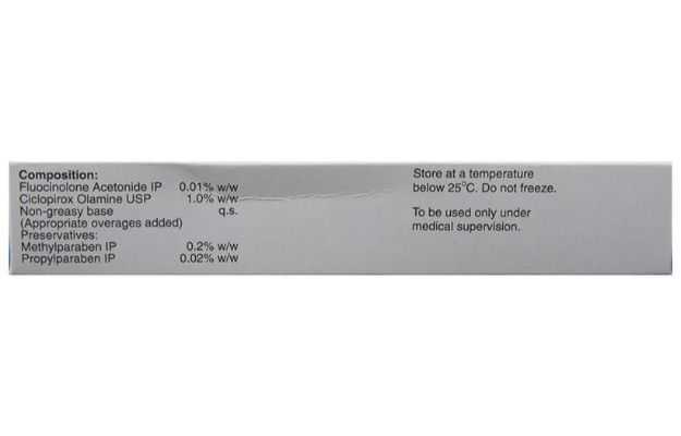 • सामग्री / साल्ट: Ciclopirox (1 % w/w) + Fluocinolone (0.01 % w/w)