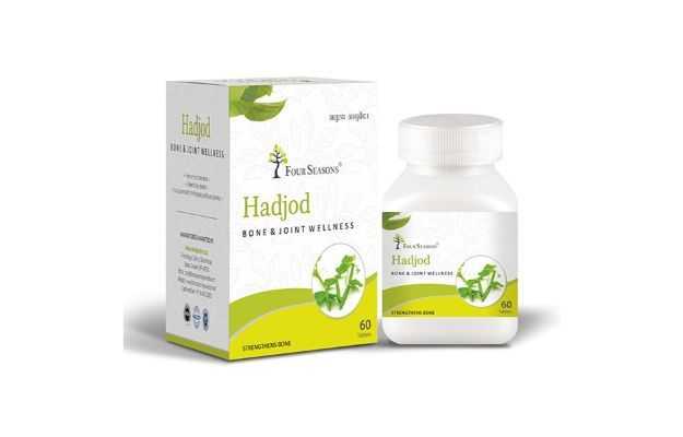 Four Seasons Hadjod Tablet बिना डॉक्टर के पर्चे द्वारा मिलने वाली आयुर्वेदिक दवा है, जो मुख्यतः हड्डियों में दर्द के इलाज के लिए उपयोग किया जाता है। इसके अलावा Four Seasons Hadjod Tablet का उपयोग कुछ दूसरी समस्याओं के लिए भी किया जा सकता है। इनके बारे में नीचे विस्तार से जानकारी दी गयी है। Four Seasons Hadjod Tablet के मुख्य घटक हैं हड़जोड़ जिनकी प्रकृति और गुणों के बारे में नीचे बताया गया है। Four Seasons Hadjod Tablet की उचित खुराक मरीज की उम्र, लिंग और उसके स्वास्थ्य संबंधी पिछली समस्याओं पर निर्भर करती है। यह जानकारी विस्तार से खुराक वाले भाग में दी गई है।