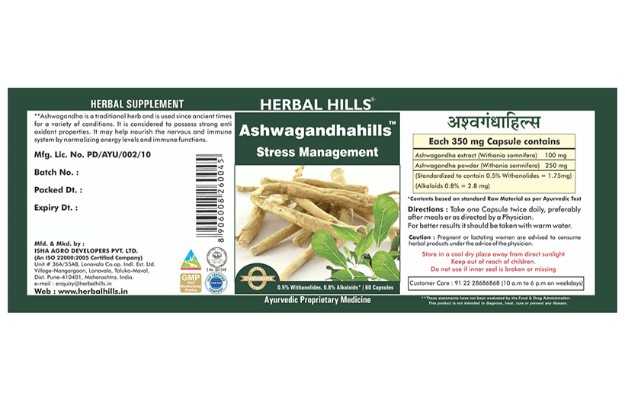 आप वाहन चला सकते हैं या कोई भारी मशीन से जुड़ा काम कर सकते हैं। क्योंकि Herbal Hills Ashwagandhahills Capsule लेने के बाद क्योंकि आपको नींद नहीं आएगी।