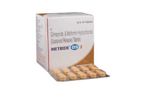 Metride Ds डॉक्टर के पर्चे द्वारा मिलने वाली दवा है, जो टैबलेट के रूप में उपलब्ध है। इसे मुख्यतः शुगर के इलाज के लिए उपयोग किया जाता है। इस दवाई Metride Ds को अन्य दिक्कतों में भी काम लिया जा सकता है, जिनके बारे में नीचे बताया गया है।