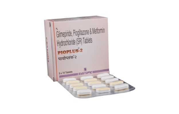 Pioplus 2 Tablet SR डॉक्टर के पर्चे द्वारा मिलने वाली दवा है, जो टैबलेट के रूप में उपलब्ध है। यह दवाई खासतौर से शुगर के उपचार के लिए इस्तेमाल की जाती है। इस दवाई Pioplus 2 Tablet SR को अन्य दिक्कतों में भी काम लिया जा सकता है, जिनके बारे में नीचे बताया गया है।