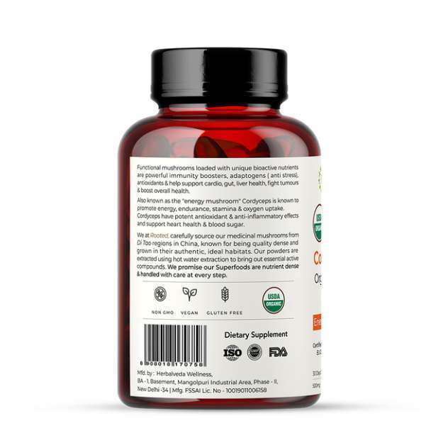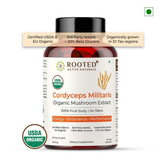 Rooted Active Naturals Cordyceps Militaris Orgainic Mushroom Extract Capsules की जानकारी