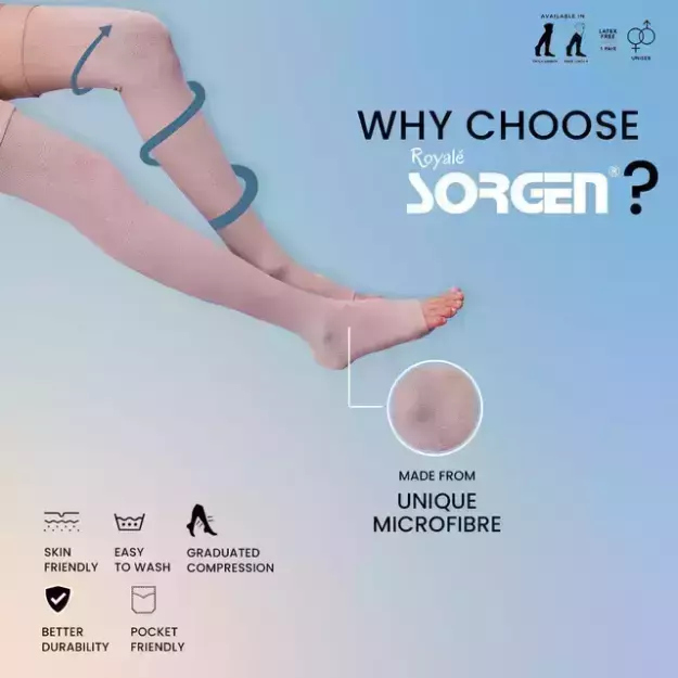 Sorgen Royale (Microfiber) Extra Soft Superior Fabric Medical Compression Stockings For Varicose Veins Class 1 Thigh Length (Large) के लाभ और उपयोग करने का तरीका - Sorgen Royale (Microfiber) Extra Soft Superior Fabric Medical Compression Stockings For Varicose Veins Class 1 Thigh Length (Large) Benefits & Uses in Hindi