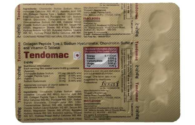 Tendomac बिना डॉक्टर के पर्चे द्वारा मिलने वाली एलोपैथिक दवा है, इसके अलावा Tendomac का उपयोग कुछ दूसरी समस्याओं के लिए भी किया जा सकता है। इनके बारे में नीचे विस्तार से जानकारी दी गयी है। Tendomac के मुख्य घटक हैं एल आर्जिनाइन, कोलेजन पेप्टाइड , विटामिन सी , कॉन्ड्रॉइटिन Tendomac की उचित खुराक मरीज की उम्र, लिंग और उसके स्वास्थ्य संबंधी पिछली समस्याओं पर निर्भर करती है। यह जानकारी विस्तार से खुराक वाले भाग में दी गई है।
