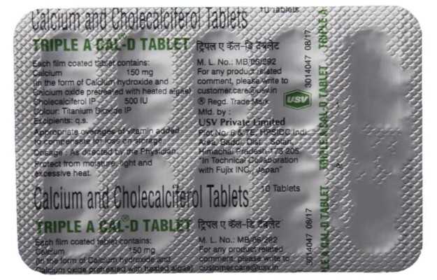 Triple A Cal D बिना डॉक्टर के पर्चे द्वारा मिलने वाली एलोपैथिक दवा है, Triple A Cal D की उचित खुराक मरीज की उम्र, लिंग और उसके स्वास्थ्य संबंधी पिछली समस्याओं पर निर्भर करती है। यह जानकारी विस्तार से खुराक वाले भाग में दी गई है।