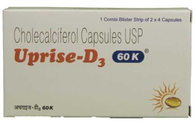 Uprise D3 60K Capsule (4) डॉक्टर के पर्चे द्वारा मिलने वाली दवा है, जो कैप्सूल के रूप में उपलब्ध है।