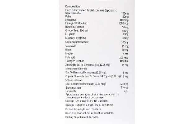 Virgo Healthcare ZeroFall Tablets मुख्यतः बालों का झड़ना, गंजापन के इलाज के लिए उपयोग किया जाता है। Virgo Healthcare ZeroFall Tablets के मुख्य घटक हैं बायोटिन , लाइकोपिन , मल्टीविटामिन, खनिज पदार्थ, सॉ पाल्मेटो, ओमेगा 3 फैटी एसिड जिनकी प्रकृति और गुणों के बारे में नीचे बताया गया है। Virgo Healthcare ZeroFall Tablets की उचित खुराक मरीज की उम्र, लिंग और उसके स्वास्थ्य संबंधी पिछली समस्याओं पर निर्भर करती है। यह जानकारी विस्तार से खुराक वाले भाग में दी गई है।