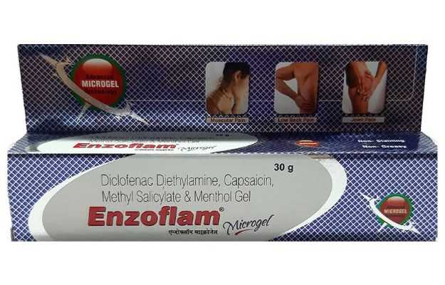 इंज़ोफ्लैम सूक्ष्म जेल पेशी के दर्द को कम करने के लिए प्रयोग किया जाता है। इसमें डिक्लोफेनाक, कैप्सैसिइन, मेन्थॉल, मिथाइल सैलिसिलेट शामिल हैं।